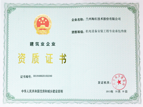 我公司獲得機(jī)電設(shè)備安裝工程專(zhuān)業(yè)承包三級(jí)資質(zhì)證書(shū)