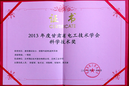 我公司獲得“2013年度甘肅省電工技術(shù)學(xué)會(huì)科學(xué)技術(shù)獎(jiǎng)一等獎(jiǎng)”