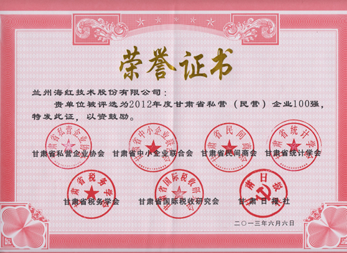 我公司被評(píng)選為“甘肅省私營(yíng)(民營(yíng))企業(yè)100強(qiáng)“單位