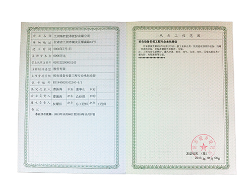 我公司獲得機電設(shè)備安裝工程專業(yè)承包三級資質(zhì)證書 By 海紅技術(shù) 2014-09-06 00:00:00 0次 2013年10月12日,我公司獲得蘭州市建管辦頒發(fā)的“機電設(shè)備安裝工程專業(yè)承包三級”資質(zhì)證書。 上一篇:公司召開2013年終總結(jié)表彰大會 下一篇:公司舉辦2014新春團拜會