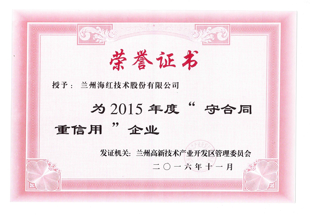 我公司榮獲2015年度“守合同、 重信用”企業榮譽稱號