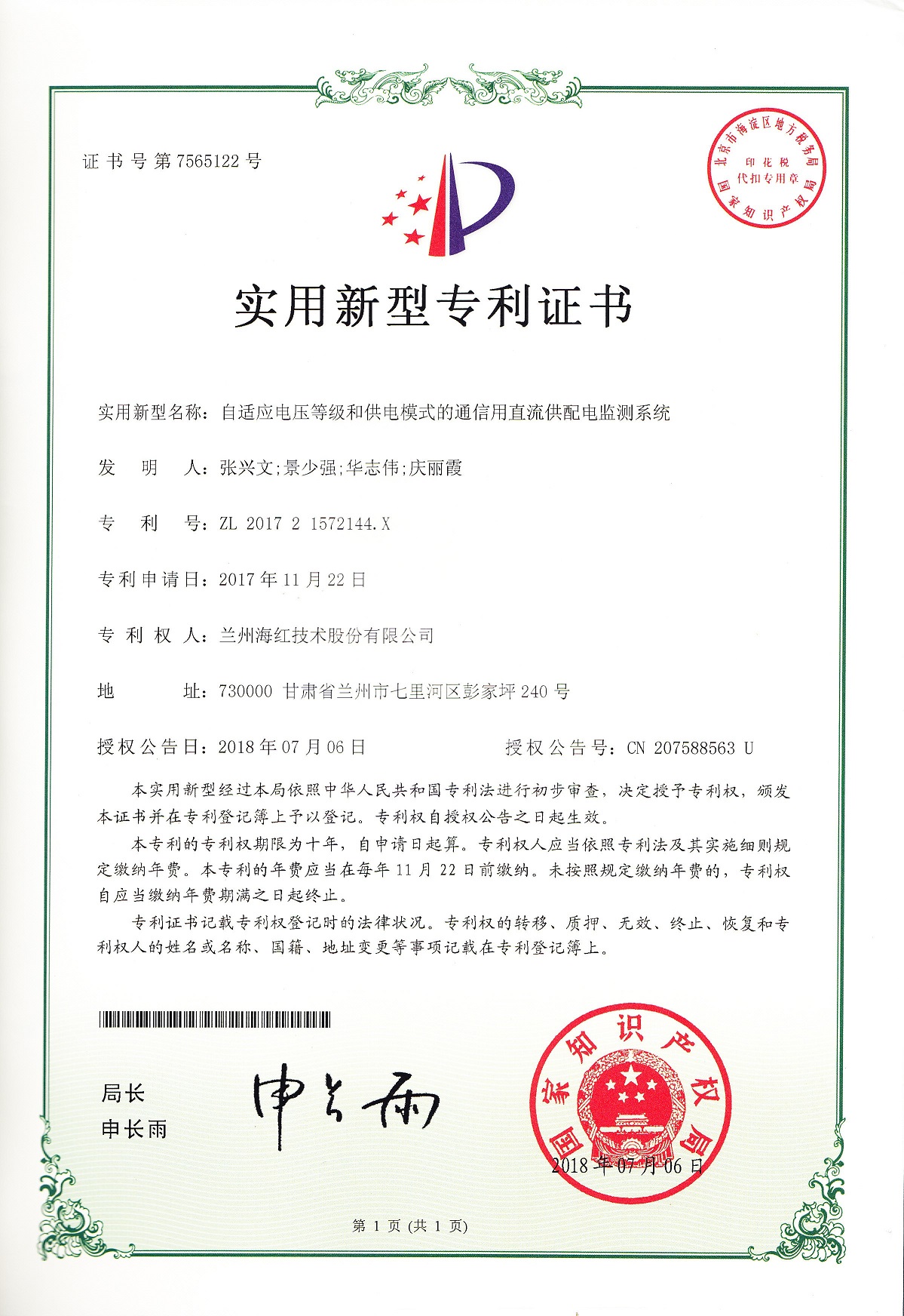 我公司又取得三項實用新型專利,至此我公司申請受理的專利數累積84項(其中發明專利17項,實用新型專利56項,外觀設計專利3項,軟件著作權8項),已獲得授權64項(其中發明專利8項,實用新型專利45項,軟件著作權登記8項,外觀設計專利3項)。