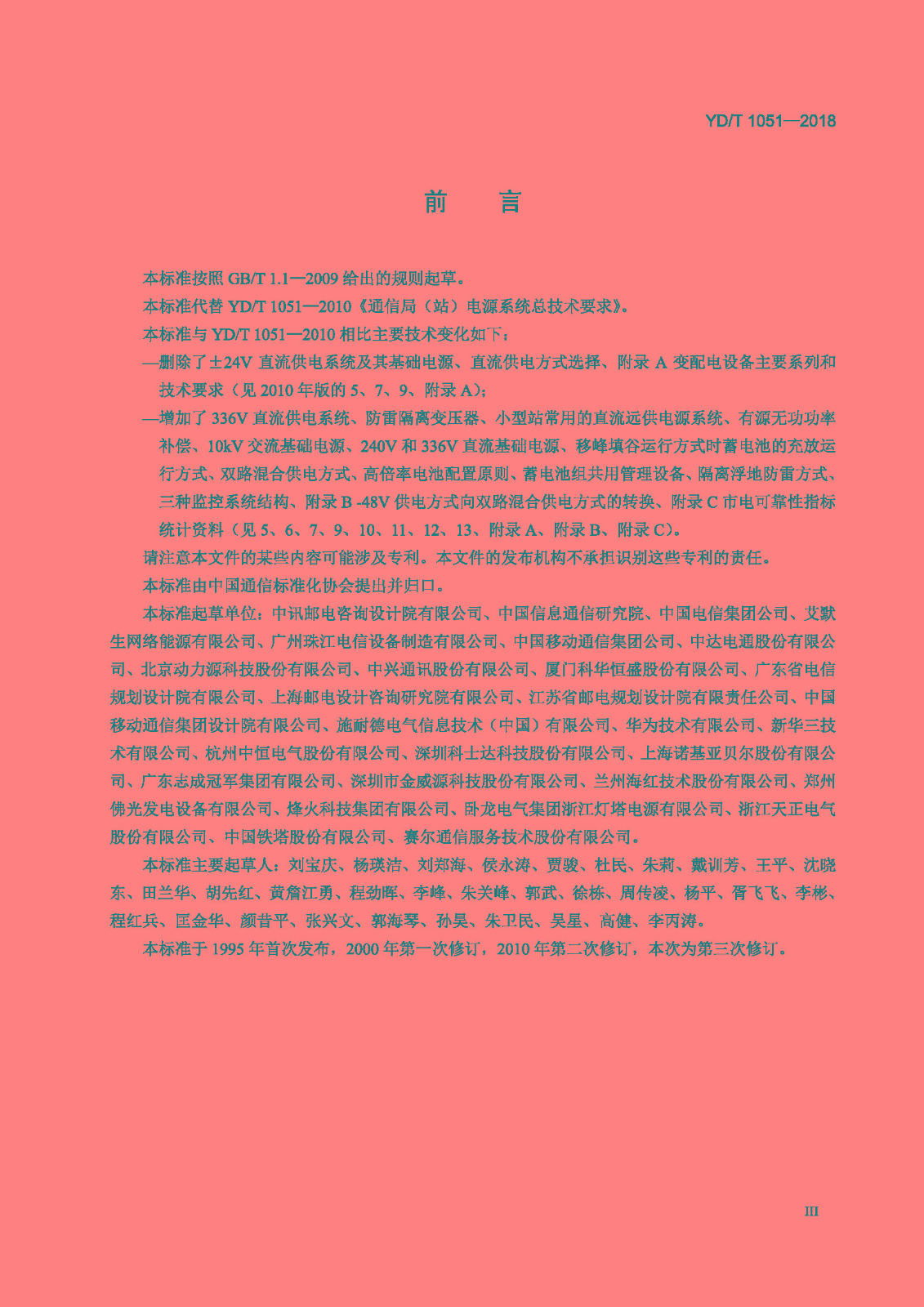 我司參與起草的《通信局(站)電源系統總技術要求》(YD/T 1051-2018)行業標準經中華人民共和國工業和信息化部批準發布,已于2019年04月01日實施。我司技術中心研發部工程師張興文參與了該標準的起草。該標準是繼《通信電源和機房環境節能技術指南 第5部分:氣流組織》、《網絡機柜用分布式電源系統》、《通信電源和機房環境節能技術指南 第2部分:應用條件》、《通信用240V直流供電系統使用技術要求》四項標準之后,由我司參與起草正式出版的第5項行業標準。