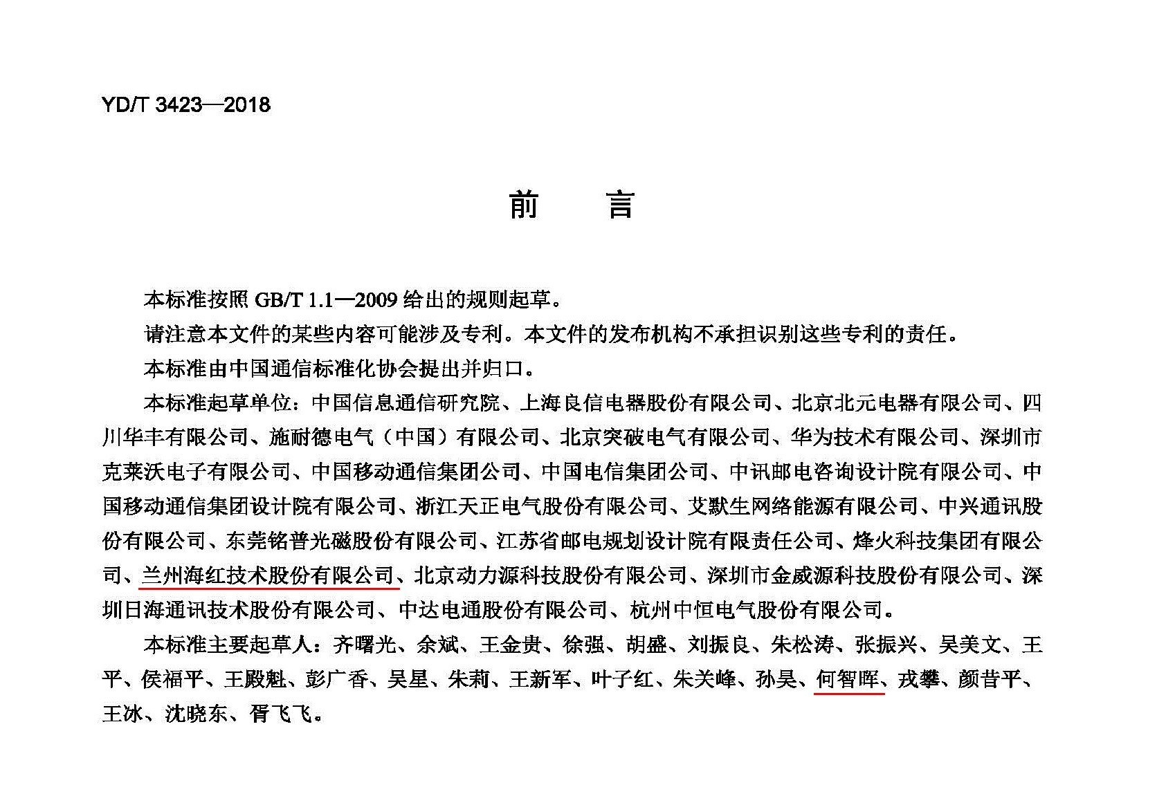 我司參與起草的《通信用240V/336V直流配電單元》(YD/T 3423-2018)行業標準經中華人民共和國工業和信息化部批準發布,已于2019年04月01日實施。我司技術中心研發部工程師何智暉參與了該標準的起草。該標準是繼《通信電源和機房環境節能技術指南第5部分:氣流組織》、《網絡機柜用分布式電源系統》、《通信電源和機房環境節能技術指南 第2部分:應用條件》、《通信用240V直流供電系統使用技術要求》、《通信局(站)電源系統總技術要求》五項標準之后,由我司參與起草正式出版的第6項行業標準。