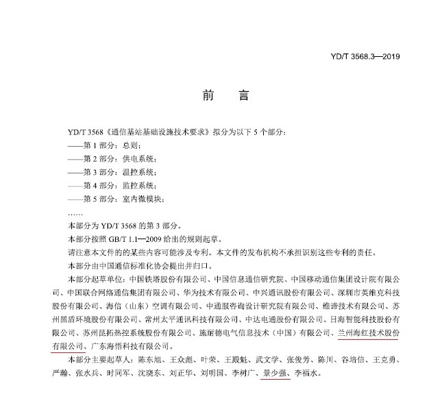 我司參與起草的行業標準《通信基站基礎設施技術要求 第3部分:溫控系統》已正式出版