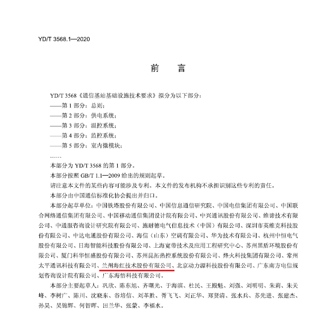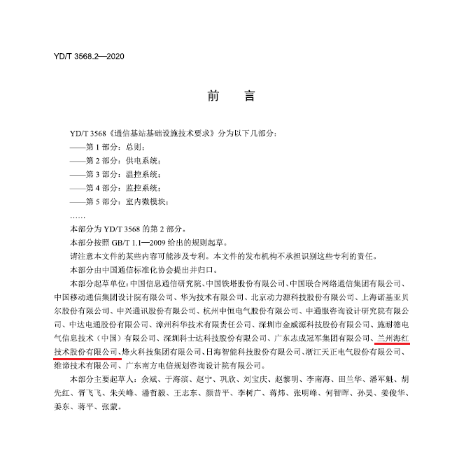 我司參與起草的《通信基站基礎(chǔ)設(shè)施技術(shù)要求 第1部分:總則》(YD/T 3568.1-2020)、《通信基站基礎(chǔ)設(shè)施技術(shù)要求 第2部分:供電系統(tǒng)》(YD/T 3568.2-2020)兩項(xiàng)行業(yè)標(biāo)準(zhǔn)經(jīng)中華人民共和國(guó)工業(yè)和信息化部批準(zhǔn)發(fā)布,已于2020年07月01日實(shí)施。以上標(biāo)準(zhǔn)是繼《通信電源和機(jī)房環(huán)境節(jié)能技術(shù)指南第5部分:氣流組織》、《網(wǎng)絡(luò)機(jī)柜用分布式電源系統(tǒng)》、《通信電源和機(jī)房環(huán)境節(jié)能技術(shù)指南 第2部分:應(yīng)用條件》、《通信用240V直流供電系統(tǒng)使用技術(shù)要求》、《通信局(站)電源系統(tǒng)總技術(shù)要求》、《通信用240V/336V直流配電單元》、《通信機(jī)房用光纖槽道》、《通信基站基礎(chǔ)設(shè)施技術(shù)要求 第3部分:溫控系統(tǒng)》八項(xiàng)標(biāo)準(zhǔn)之后,由我司參與起草正式出版的第9項(xiàng)、第10項(xiàng)行業(yè)標(biāo)準(zhǔn)。