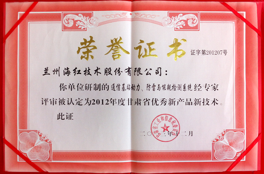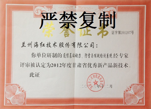 2012年度甘肅省優秀新產品新技術證書榮譽證書