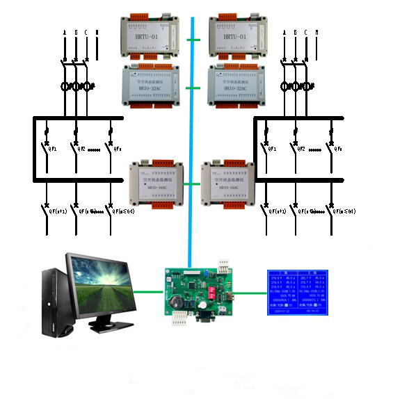 此方案主要運用于AB雙路與UPS雙路電源系統的交流配電設備,實現獨立雙路交流電源分配設備的全面監控。具有獨立雙路交流配電設備雙路母線電量及配出支路狀態的監測功能,并具有故障聲光告警功能。同時具備遙測、遙信、遙控功能。