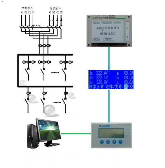 此方案主要用于通信基站用交流配電防雷箱的智能監(jiān)控,對電源分配單元與防雷保護裝置進行實時監(jiān)測。具有市電與油機發(fā)電計量,發(fā)電時間累計,各配出支路負載設備運行監(jiān)控等功能。具備RS-485、RS-422、RS-232、以太網(wǎng)四種通信接口,可上傳數(shù)據(jù)到基站動環(huán)監(jiān)控系統(tǒng),實現(xiàn)基站集中管理。方便用戶全面了解掌握基站交流電源及負載設備運行情況;方便發(fā)電業(yè)務的管理考核;并為基站能耗管理、節(jié)能減排提供全面可靠的分析數(shù)據(jù)。