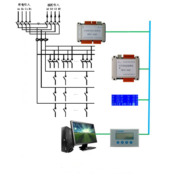 此方案主要運用于通信小型機房、基站的交流配電與防雷設備的集中監控。可對交流配電母線電量、防雷保護裝置等進行實時監控,具有配出支路開關狀態的監測,故障聲光告警,市電電能計量,油機發電時間統計等功能。并具備遙測、遙信、遙控功能。